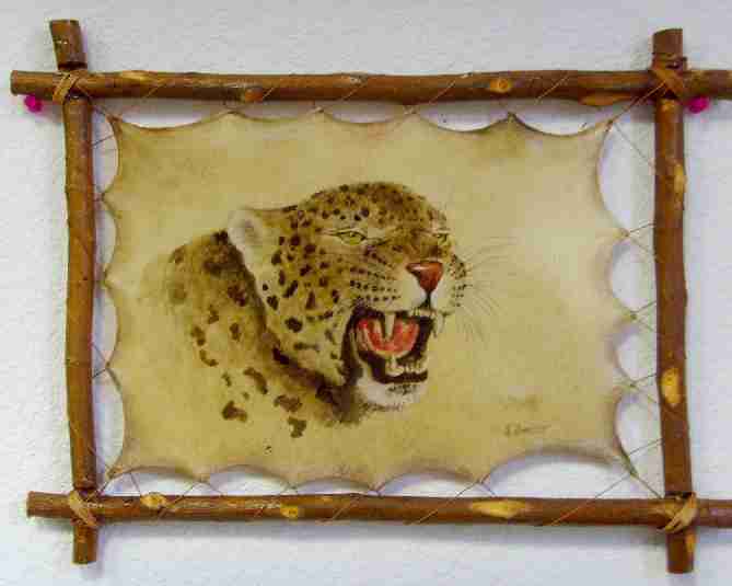 Картина на коже Пантера, рамка - природный тутовник 38 х 31 см |