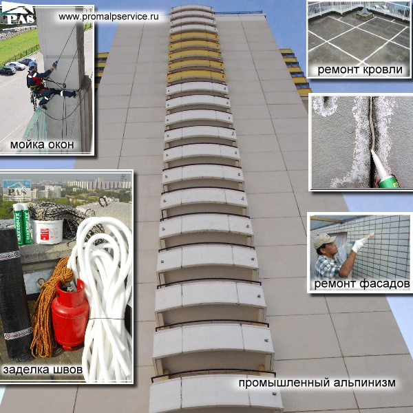Промышленный альпинизм - технологи высотных работ на зданиях и сооружениях для выполнения фасадных работ: мойка окон, ремонт кровли, герметизация швов, подъем грузов, ремонт окон
