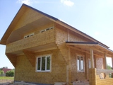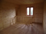 Второй дом 120 кв.м. двух этажный. Материал постройки – брус, фундамент – ленточный. На первом этаже две комнаты, на втором этаже одна большая. Внутренняя отделка - вагонка.