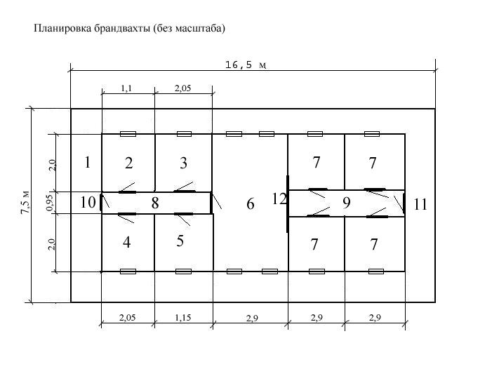 Брандвахты сварены из металлического листа толщиной 5 мм, что позволяет оставлять их в пределах водной акватории в зимний период и обеспечивает длительный срок эксплуатации. Высота борта брандвахты составляет 1,3 м., высота с надстройкой – 3,25 м.; водоизмещение без груза 24,7 м.куб., с грузом – 28,3 м.куб.; осадка без груза – 0,2 м., осадка с грузом – 0,25 м.; высота потолков в каютах и кают-компании – 2,5 м., в помещениях 1-4 – 2,1 м.