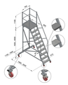 Для удобства буксировки Стремянка оснащена рулевой трапецией с дышлом. Устойчивость при работе на ветру обеспечивается аутригерами и регулируется пригрузами. Изготавливаются стремянки с высотой рабочей площадки от 1000 до 4500 мм (шаг изменения высоты 250 мм).