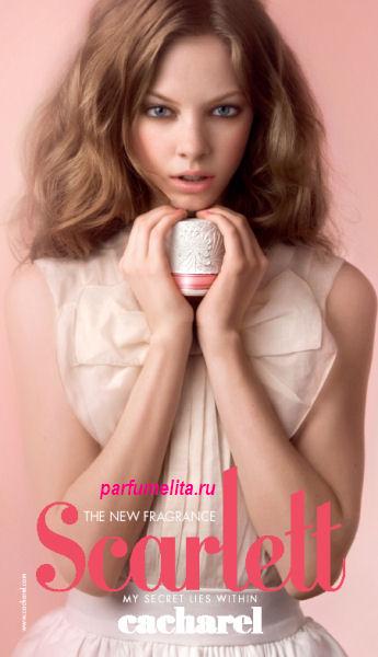 Парфюмерный бренд Cacharel в июле 2009 года представил новый аромат, рассчитанный на девушек в возрасте от 15 до 25. Аромат получил название Scarlett - в честь голливудской актрисы Скарлетт Йоханссон и ее далекой предшественницы, героини культового романа «Унесенные ветром» Скарлетт О’Хара.Над его созданием работали сразу три известных парфюмера - Альберто Мориллас, Оливье Кресп, Онорин Бланк. Композиция аромата построена на нотах жасмина, цветов апельсина, жимолости, белого мускуса и сандалового дерева и дополнена чайными листьями, цитрусами и грушей