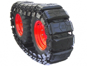 Гусеницы на колеса погрузчиков с боковым поворотом типа "Bobcat". Улучшают проходимость техники, снижают давление на грунт, защищают колеса от боковых порезов.