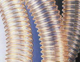 Прозрачный полиуретановый шланг с полностью заделанной в стенку стальной спиралью, покрытой медью, позволяет частично снимать статическое электричество, образующееся при транспортировке твердых частиц.
