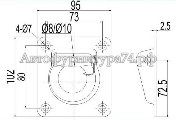 Кольцо для крепления груза из прочной стали. Устанавливается внутрь спецмашин для удерживания и фиксации грузов внутри автомобиля. Поставляется с пружиной возврата или без нее. Выдерживает очень высокие нагрузки.