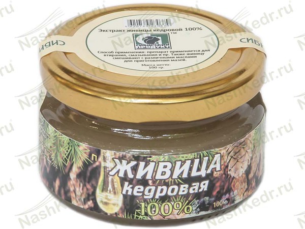 Живица кедра необходима для обертываний, растираний, комплессов. Кроме того, народная медицина рекомендует использовать кедровую живицу при сердечных, инфекционных, желудочных, простудных