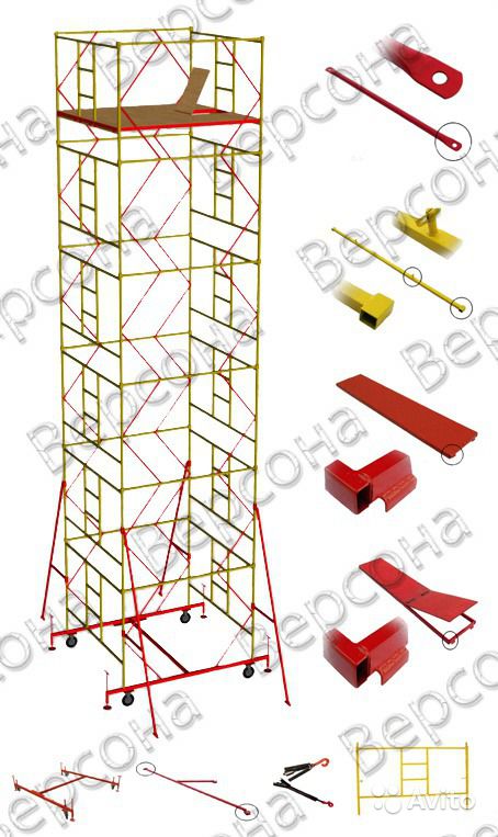 сдам в аренду 2 секции лесов.предназначены для внутренних и наружних работ.высота настила 9.1.общая высота 10.1.размер рабочей площадки 2х1.5.со стабилизатором.металические сборные.цена указана за сутки.самовывоз.предоплата стоимость лесов.состояние хорошее.