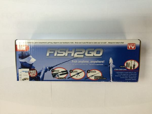Складная удочка Fish 2 Go характеристики: раскладывается на длину от 30 до 127 см; в комплекте 16 рыбешек-приманок: 2 вида прозрачных; 1 вид полупрозрачных; 1 вид непрозрачных. Это приспособление достаточно компактное и практичное. За счёт того, что конструкция обладает высокой прочностью и эластичностью, удочку можно забрасывать на большие расстояния, не опасаясь того, что леска порвётся или сломается. При этом габариты удочки могут достигать от 30 сантиметров до 1 метра 30 сантиметров. Такой размах гарантирует рыбаку большую удачу при ловле рыбы, и, забрасывая удочку на большие расстояния, повышается шанс на большой улов и так можно словить больше рыбы. Несмотря на то, что удочка не требует тщательной чистки, всё же рекомендуется после каждой рыбалки полоскать её в воде с мылом.