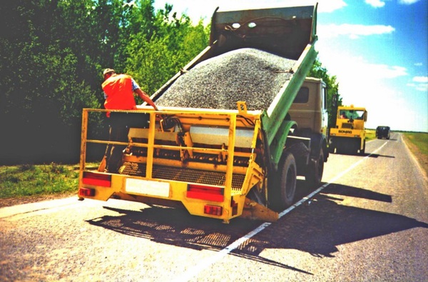 Щебнераспределитель навесной предназначен для равномерного распределения щебня в один слой по слою свеженанесённой эмульсии при производстве поверхностной обработки с целью: