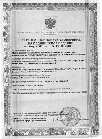 Маски выполнены по Тех. условиям, на заводе в РФ. Имеются все разрешительные документы.