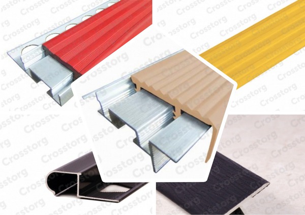 Пороги, раскладка для керамической плитки, профили для ступеней, плинтусы и пр.