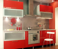 Фасады выполняются из различных материалов: массив, раттан, зеркала, стекло, МДФ (покрытые эмалью или пленкой ПВХ), комбинированные. Большой выбор аксессуаров,в т.ч. рейлинги, бутылочницы, карусели, барные стойки и пр. Наполнение шкафов – от традиционных полок и ящиков до современных сетчатых корзин, выдвижных держателей и вешал. Зеркала и стёкла - матовые, тонированные,с эффектом металлик и хит сезона- с рисунком (технология-пескоструй)!