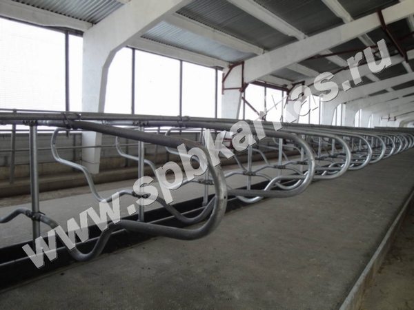 НПО «Каркас» предлагает проверенную временем систему стойловых секций. Эта технология подходит как для вновь строящихся коровников, так и для реконструируемых, что особенно актуально для животноводства в России. Стойловое оборудование состоит из универсальных крепежных элементов и разделителей, позволяющих закрепить без сварки все элементы стойлового оборудования и оборудования для ограждения кормового стола и секций. Антикоррозионное покрытие выполнено методом горячего цинкования с толщиной покрытия 240 мкм. Конструкция секций и боксов обеспечивает комфортабельное размещение крупного рогатого скота в коровнике. Форма секции обеспечивает корове пространство для комфортного отдыха и свободного перемещения. Учитывая содержание в атмосфере животноводческих помещений аммиака и других агрессивных газов, все металлические конструкции надежно защищены от коррозии горячим цинкованием, что обеспечивает долгий срок службы конструкции. По желанию заказчика оборудование может быть окрашено полимерным порошковым покрытием либо поставляться без покрытия, что значительно дешевле, но менее долговечно. При привязном содержании стойло – основное место обитания коров. Естественно, поэтому, здоровье, продуктивность и воспроизводительная способность животных во многом зависят от конструкции и размеров стойла. При беспривязном содержании основным элементом стойлового оборудования является индивидуальный бокс, который предназначен только для отдыха животных. Его конструкция и размеры соответствуют этому назначению и отвечают трем основным требованиям: позволяет корове ложиться и вставать естественным образом с подачей туловища вперед, удобна и комфортна для того, чтобы корова отдыхала лежа не менее 12-14 часов в сутки и обеспечивает чистую и сухую поверхность под выменем. НПО «Каркас» изготавливает стойловое оборудование для животных всех возрастов – от телят до крупных коров.