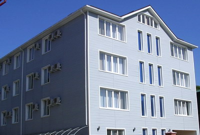 Гостиница с просторными номерами с туалетом и душем в номере. В номере кондиционер, ТВ, холодильник, тумбочка, шкаф, зеркало.