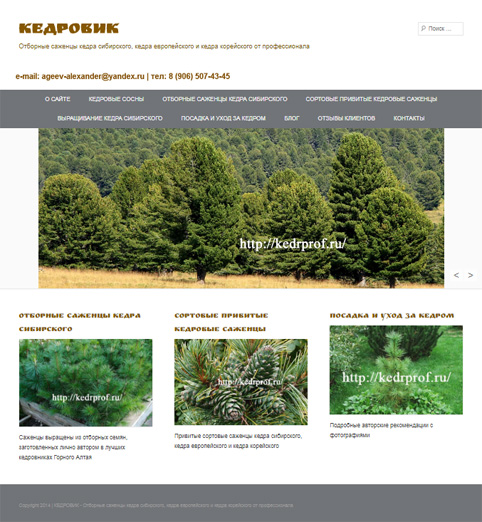 Сайт «Кедровик» (отборные саженцы кедра сибирского, кедра европейского и кедра корейского от профессионала) создал кандидат сельскохозяйственный наук, с 40-летним опытом исследования и выращивания кедра сибирского.