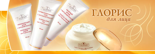 "Глорис" - линия натуральной косметики, которая представлена косметическими средствами для очищения, тонизирования, увлажнения, питания и защиты, а также специальными средствами для дополнительного ухода. Благодаря системе индивидуального подбора, можно самостоятельно выбрать и заказать любое понравившееся средство. Заполните тест, и Вы получите комплект средств для ежедневного ухода за лицом и шеей, которые идеально подходят именно Вашей коже и учитывают ее тончайшие особенности.