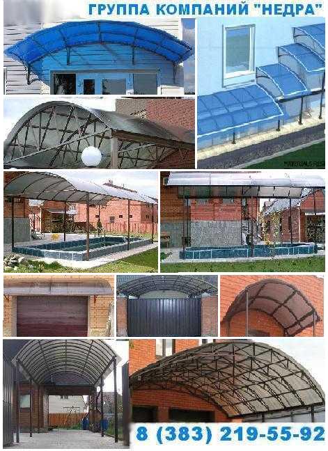 Козырьки и навесы из сотового поликарбоната и металла. Навесы и козырьки: для машины (автомобиля), над входом, навесы из поликарбоната для бассейнов и для дачи. Навесы являются эффективным средством защиты от солнца и атмосферных осадков.