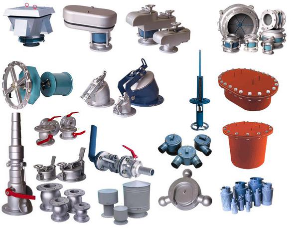 • клапаны: дыхательные, обратные, приемные (КДС, СМДК, КДМ, КПГ, НДКМ, ЗКО, КП)