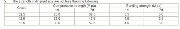The product carries out the standard: JC/T659-1997. The strength grade depends on its7 days compressive strength. There are three grades: 32.5, 42.5 and 52.5