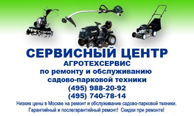 Сервисный центр «АГРОТЕХСЕРВИС» - специализируется на ремонте садово-парковой, коммунальной, силовой и строительной техники мировых производителей (ремонт культиваторов, мотоблоков, газонокосилок, бензокос, снегоуборщиков, бензогенераторов, виброплит и мн.др. ЗАПЧАСТИ!)