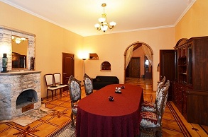 На 1 этаже: холл,2 просторные спальни, большая гостиная с камином и караоке, кухня, с/у.
