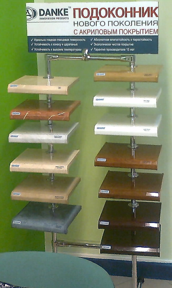 Немецкие подоконники Премиум класса с Глянцевым многослойным акриловым покрытием (не боятся горячих предметов, царапин, устойчивы к ультрафиолету и агрессивным средам) ТМ «Данке» со склада в Москве в нарезку любого размера с доставкой от 1шт – 13 дизайнов. БЕСПЛАТНО предоставляем рекламные стенды, веера и пр. Программа работы с регионами и дилерами. 8929-668-04-92
