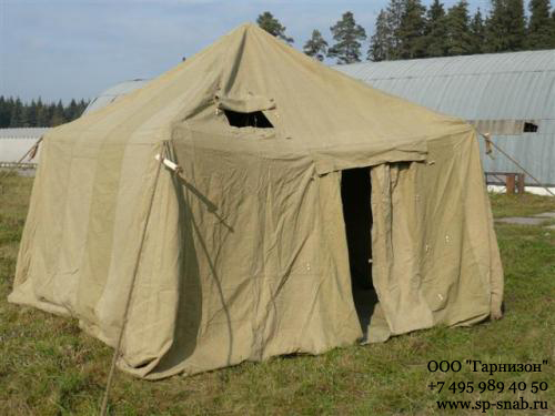 Для тех, кто планирует длительный поход, очень интересна будет палатка ПРК, она же брезентовая металло-каркасная, предназначенная для размещения людей. Эта палатка относится к категории стационарных (бивачных), и подходит для размещения ее в лагере для длительного использования.Габариты палатки по основанию составляют 4 метра на 4 метра, сама палатка 3 метра на 3 метра. Очень популярна она и у горнолыжников на базах, там обычно используют по несколько подобных палаток: одна палатка приспосабливается под кухню, в другой размещаются спальные места для комфортного отдыха на 4-8 человек, а в третьей - хранятся снасти. В этой палатке предусмотрено два окна, дверь и выход для печной трубы. Ее верхний слой (брезентовый намет) выполнен из специальной палаточной ткани, используемой в вооруженных силах РФ. Внутренний намет выполнен из утеплителя, хорошо приспособленного под всесезонное использование (зима-лето). Так же в комплект палатки ПРК входит напольное покрытие, оттяжки и металлический каркас. Металлический каркас состоит из четырехсекционной конструкции, позволяющей придать форму крыше палатки, высота центрального столба достигает 2,5 метров. Центральная металлическая конструкция крепится к боковым металлическим элементам Г-образной формы, которые в свою очередь укрепляются на боковых кольях. А уже боковые колья прочно закрепляются в земле. Собранная металлическая конструкция накрывается брезентовыми наметами. Предусмотренное в палатке отверстие для печной трубы располагается с правой стороны от входа, а окно находится напротив двери. Палатка имеет цвет хаки. Эту палатку нельзя назвать легкой, она предназначена для перевозки транспортом, так как вес ее (80 кг) не позволяет носить ее за плечами, а в снаряженном виде он составляет до 120 кг. Однако, по отзывам, многие утверждают, что 2 человека смогут ее без полной разборки, за каркас при необходимости перенести на расстояние 100-200 метров. Но в такой палатке отдых на природе будет очень комфортным. Стоит отметить, что некоторые применяют такие палатки и в производственных целях на загородных участках.