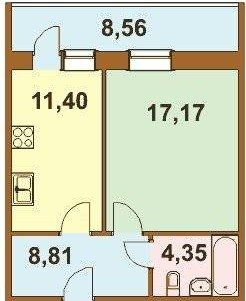 Квартира светлая, окна ориентированы на юго-запад, большая лоджия 8,56 м2 на кухню и комнату. Площадь квартиры - 40,25 м2, кухня - 11,4 м2, комната 17,17 м2, с/у - совмещенный, холл - квадратный с нишей под гардеробную. Квартира - без отделки, все инженерные коммуникации подведены в квартиру.