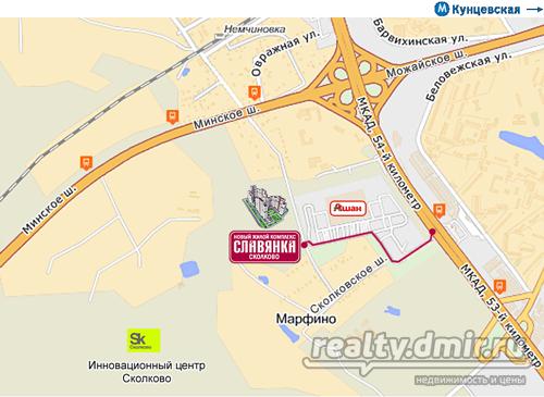 Продаются двух и трех комнатный квартиры в новостройке в многоэтажном ЖК "Славянка-Сколково" по адресу: Московская область, Одинцовский район, д. Марфино, ул. Можайское шоссе, д. 50. Квартиры общей площадью от 69,61 до 104,03 кв.м. Сдача 1-ой очереди в сентябре в 2011, 2-ая очередь декабрь 2011. Цена от 75000 рублей за кв.м. Скачать прайс лист можно на нашем сайте "9квартира.ру" .