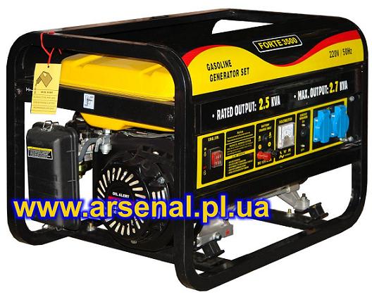 Электростанция бензиновая FORTE -3500 (напряжение 220 В, мощность 2.7 кВт, вес 35 кг, ручной старт) по цене 2320 грн. с учетом доставки транспортной компанией по регионам Украины. Идеально подходит для подключения загородного дома, мелких электроприборов, электроинструмента до 2 кВт. Более детально вы можете ознакомиться на нашем сайте. Также у нас вы можете приобрести электростанции других известных производителей (HONDA, DAISHIN,GEKO, FIRMAN,KIPOR и др.)
