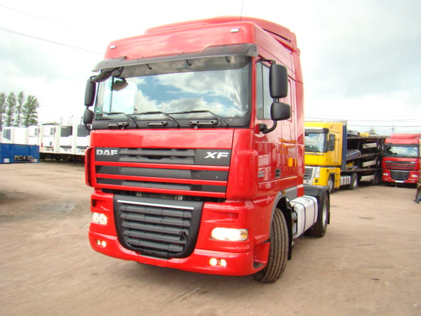 Седельный тягач DAF XF105.410 Space Cab, 2009 года, пробег: 321 000 км, колесная формула: 4x2, цвет кабины: красный, нагрузка на седло: 18 т., модель двигателя: PACCAR, мощность двигателя: 410 л/с, число цилиндров: 6, объём двигателя: 13, Euro 5, турбонаддув, емкость топливного бака: 650 л., АКПП (ZF, 12 ступенчатая), 2 спальника, cолнцезащитный козырек, магнитола, тахограф, стояночный кондиционер, ретардер, ABS, EBS, блокировка моста, люк, пневмоподвеска кабины, автономка, электроподъёмники, электропривод зеркал, электроподогрев зеркал, подогрев сидений, комплект штор, автономка, круиз контроль, запасное колесо, кранштейн под запаску, резина: 80%, немецкий техосмотр до 2013г., привезен из Германии, без пробега по РФ, находится в Санкт-Петербурге