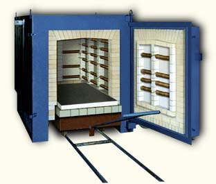 Электропечь с выкатным подом используется для закалки, обжига и отжига металлов и керамики при температуре до 1300 градусов. Использование выдвижного пода способствует быстрой загрузке и выгрузке изделий, что экономит электроэнергию и убыстряет процесс термообработки. Камера в печи сделана из волокнистых легковесных огнеупоров и шамотного кирпича. По способу открытия пода в печи может быть механический и электромеханический. Объем электропечей от 100 литров до 10 кубов. Блок управления в печи смонтирован в отдельном щите и представляет собой электронный терморегулятор, обеспечивающий регулирование скорости и времени нагрева. С помощью терморегулятора можно управлять циклом термообработки и задавать программу их выполнения.